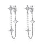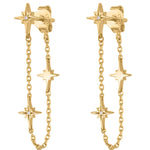 Featuring three north stars surrounding a tiny crystal stone on a gold chain that loops around to the butterfly fastening of the earring, creating an added edge to your look.