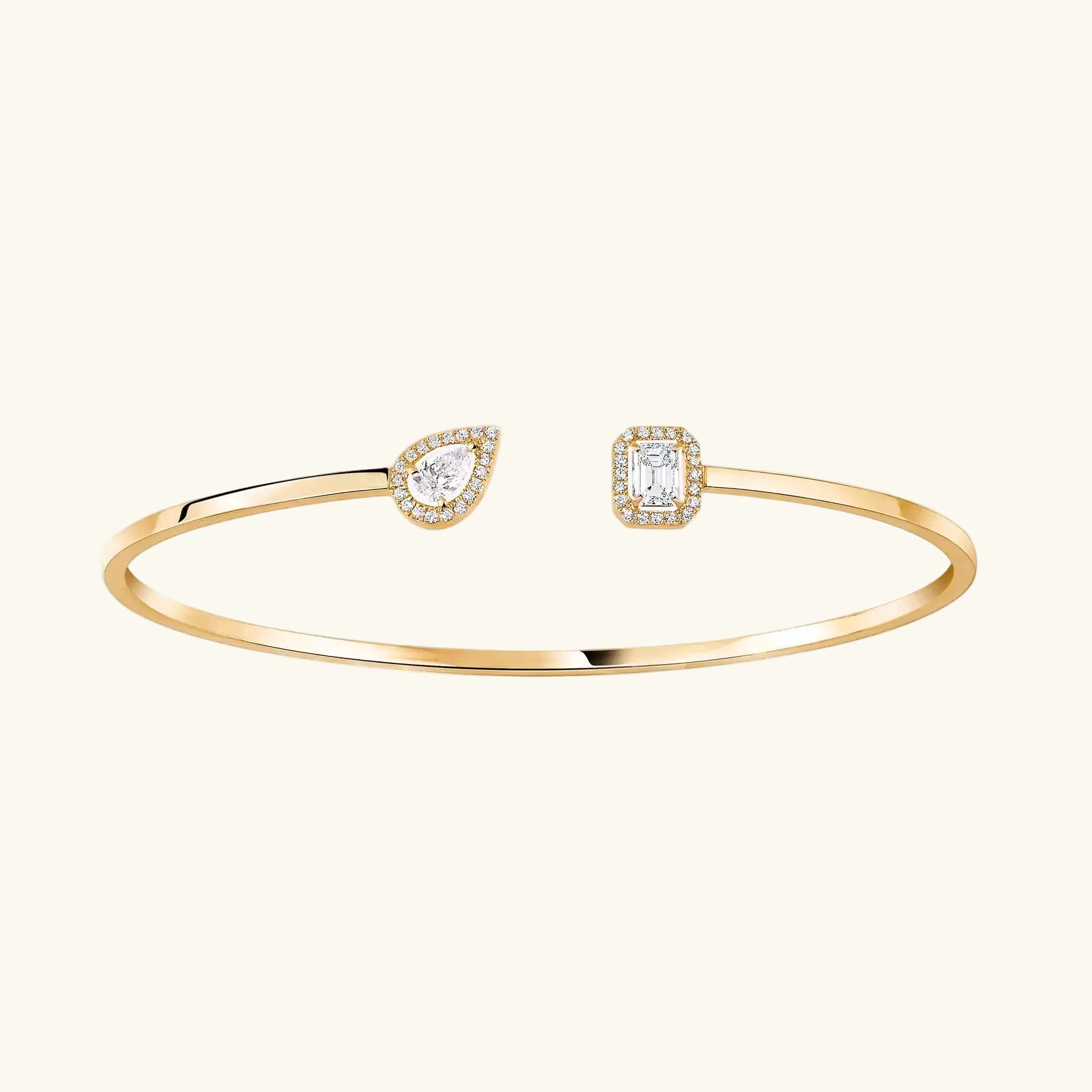The Twin Diamanté Bracelet is a chic, timeless piece for any occasion. Crafted from 925 sterling silver and plated with 18K gold, it features two sparkling diamanté stones for added elegance.